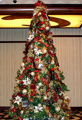 Vintage décor includes the original “Seasons Greetings” sign, the 22-foot-tall Christmas tree adorned with photos of the former Higbee’s store, and decorated lighted arches. “Because we’re in such a historical building and with the [seasonal] events in Public Square, we took it to a new level,” says Garfield of their efforts. “Every single item on the tree is original—with photos of when this was a department store, the ribbons, the garland, the string of lights, the ornaments.”