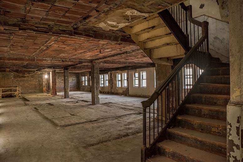 Another element DiGeronimo plans to retain is the stairway to a conference room. “The stairs are too nice to get rid of, and they have their own historical element,” he says. “We will rebuild the skylight and get some more natural light in here.”