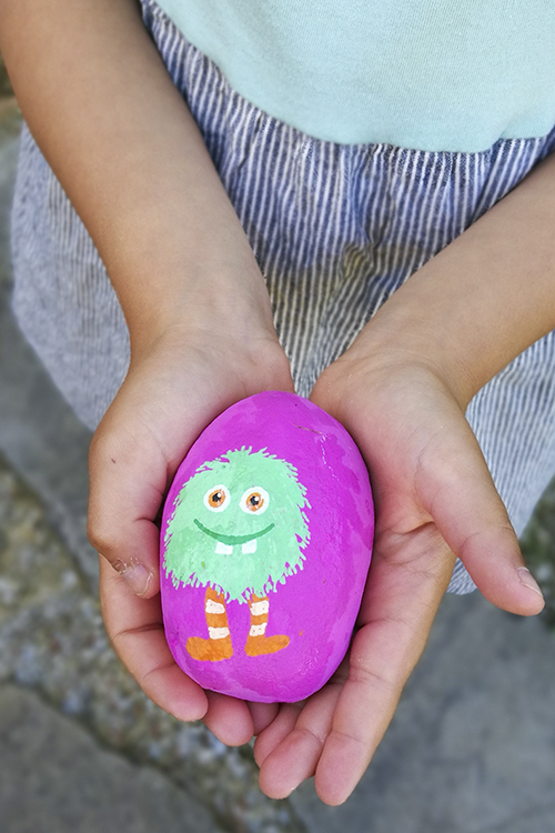 Her daughter promptly “dumped her bike, ran over to it, and got so excited,” shares Gerhmann. “She explained to me that, in the same way this painted rock made us so happy, we were supposed to take it somewhere and hide it ‘like hide and seek’ so that someone else can smile. It was beautiful to see my 6-year-old embracing the idea of kindness.”