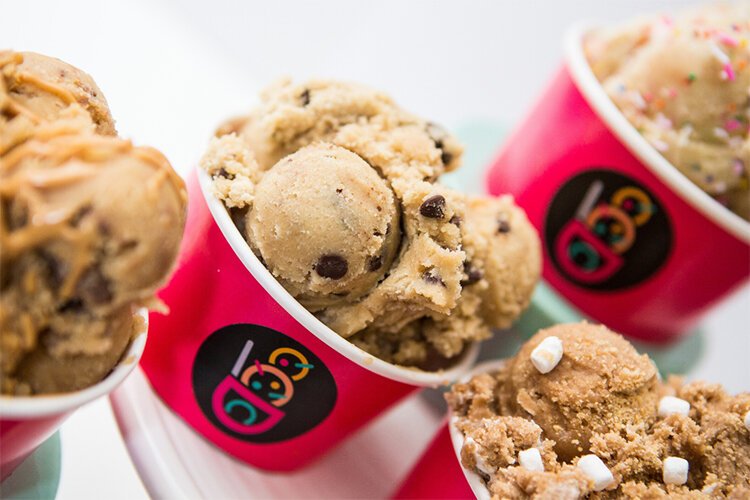 “I started looking at other dessert trends on Pinterest, then we put our own spin on it,” says Vicki. “We incorporated the cookie dough component, but we wanted to put a twist on it. Special machines [a core fitted with an aeronautical drill] mix ice cream, toppings, cereal, candies. Any one of our customers can be the DJ of their own dessert.”
