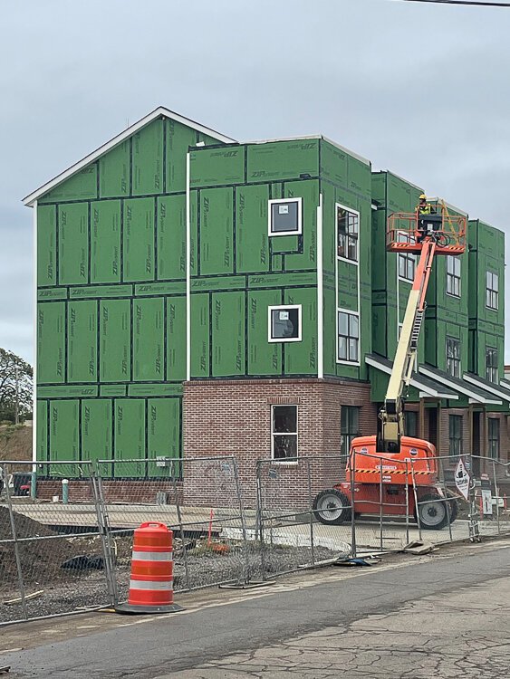 One year after breaking ground, Pike says the first phase of the four-phase project is moving along well, with the townhomes “well under way” and framing and infrastructure taking place on the main building and the entire site.