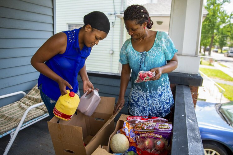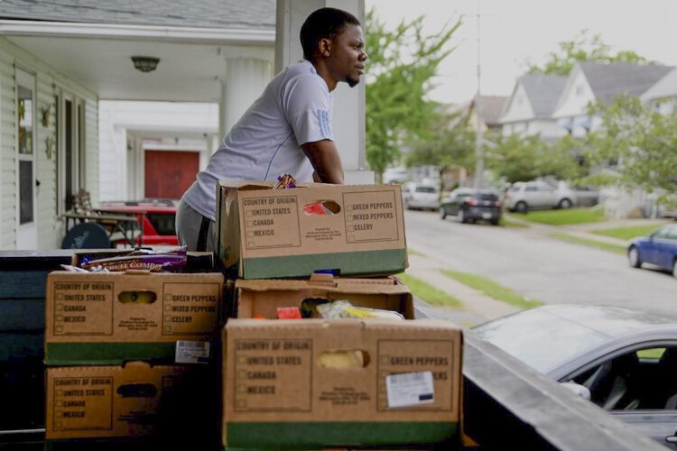Every Wednesday afternoon, members of the Congolese Community of Greater Cleveland (CCGC) in Cleveland’s Clark-Fulton neighborhood file onto Elijah Kidjana’s porch to grab donated boxes of fruit and vegetables.