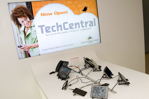 If the past just isn’t your thing, venture onward to the lower level where all things techie abound in TechCentral. There’s the legion of desktop computers consolidated here. There’s the iPad lending station that looks like an overgrown vending machine. Go ahead and borrow one, and use it anywhere in the main building. Then there’s the 3-D printer, which makes solid, three dimensional objects from a digital file.