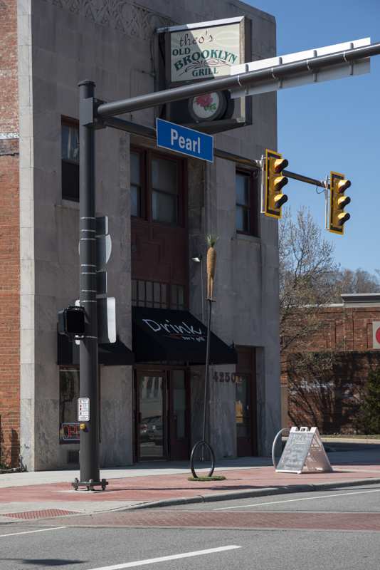 Initially, Daubert’s idea involved attaching the carrots to utility poles, but when that was nixed by the power company, she had to go back to square one. “Originally, I just wanted to make these root vegetables sticking out on Pearl, up in the air, making these cool shadows,” shares Daubert.