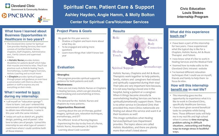 This is Hayden’s second year participating in the LSIP, which honors the legacy of late Congressman Louis Stokes. During his 30 years on Capitol Hill, Stokes devoted much of his time and effort to healthcare access, and “was committed to the advancement of STEM education for low-income, first-generation, and minority students, like himself,” says Angela Cain, director of internship programs for Cleveland Clinic.