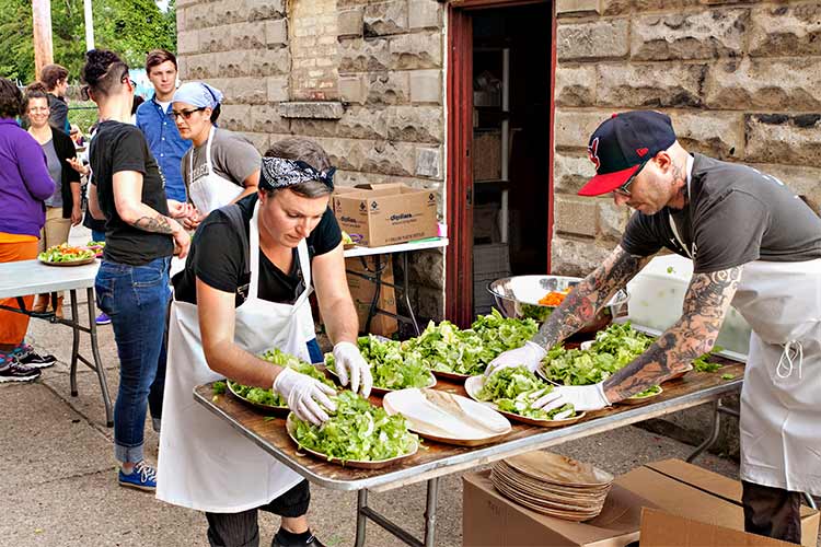 The first year of the feast—in 2016—they didn’t even have a brick-and-mortar shop. Still, with the help of partners throughout the area, Saucisson managed to serve 300 community members, increasing that number to 500 in 2017.